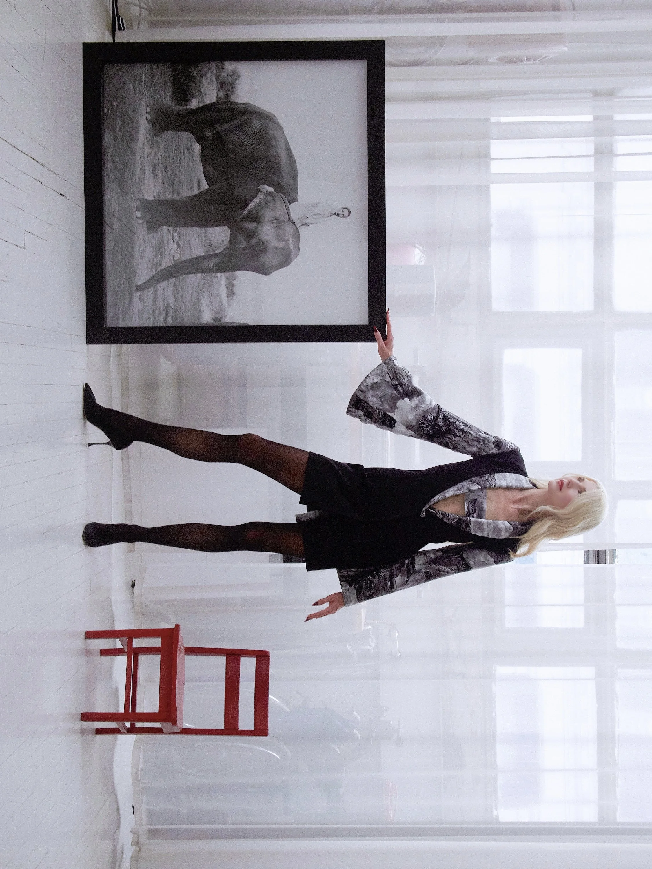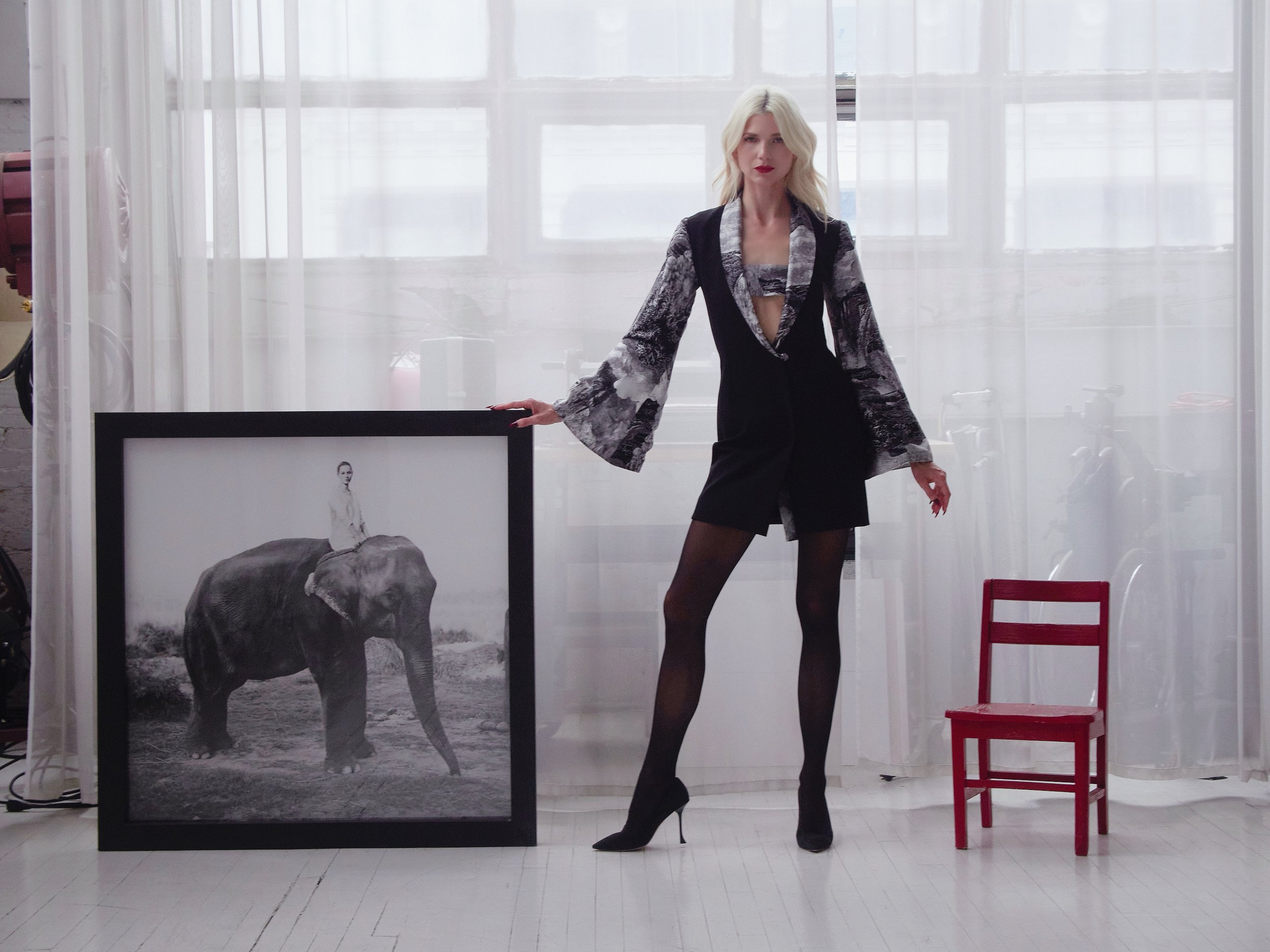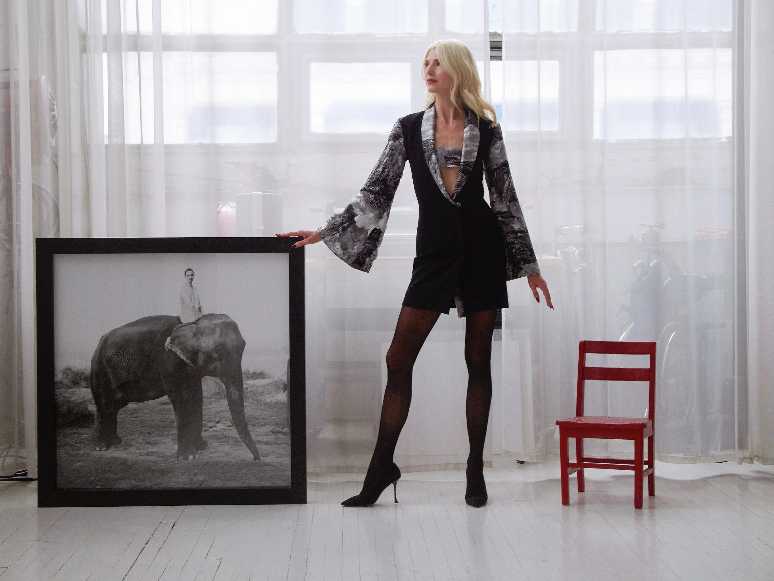 Kate Elephant Image in Angelilli Tokyo Robe and Roger Vivier Pumps